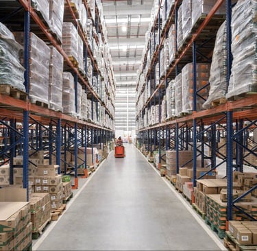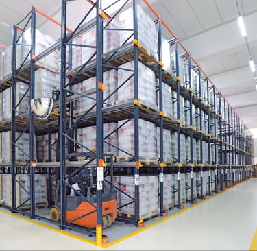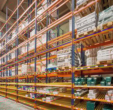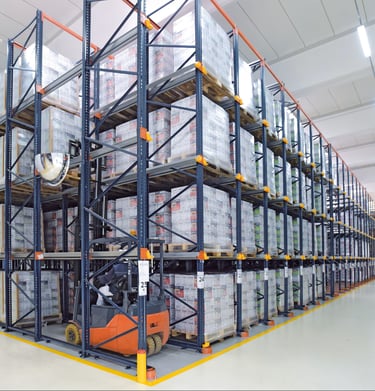 Custom design and installation of racking systems for warehouses and supermarkets.